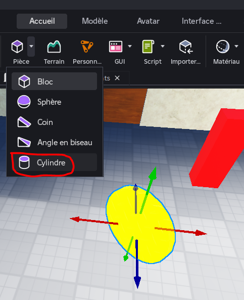 Pour insérer une pièce cylindrique pour ta première plateforme :